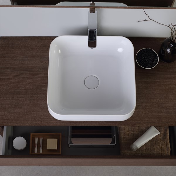 Questo modello di lavabo appoggio ES-7 da 42 cm è particolarmente versatile ed è adatto a qualsiasi tipo di metratura.