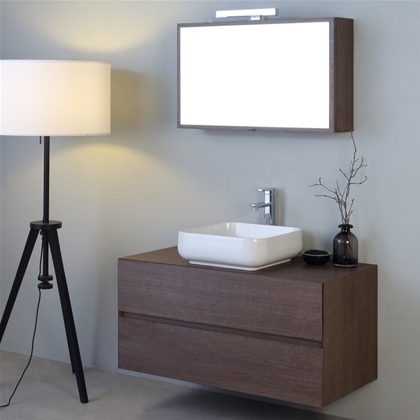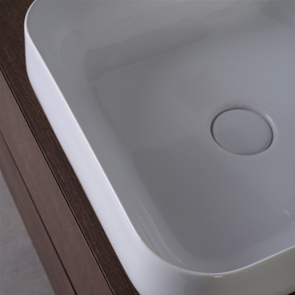 La ceramica è liscia e vellutata, il sifone del lavabo e la piletta sono nascosti dietro al mobile e per questo motivo si ottiene un effetto raccolto e molto elegante.