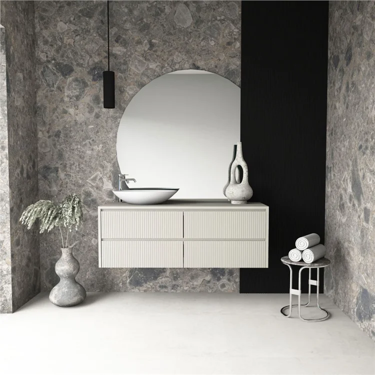 La finitura soft-touch aggiunge una dimensione tattile all'esperienza estetica. Aprire un'anta EVO è un gesto che coinvolge anche il senso del tatto, non solo la vista.